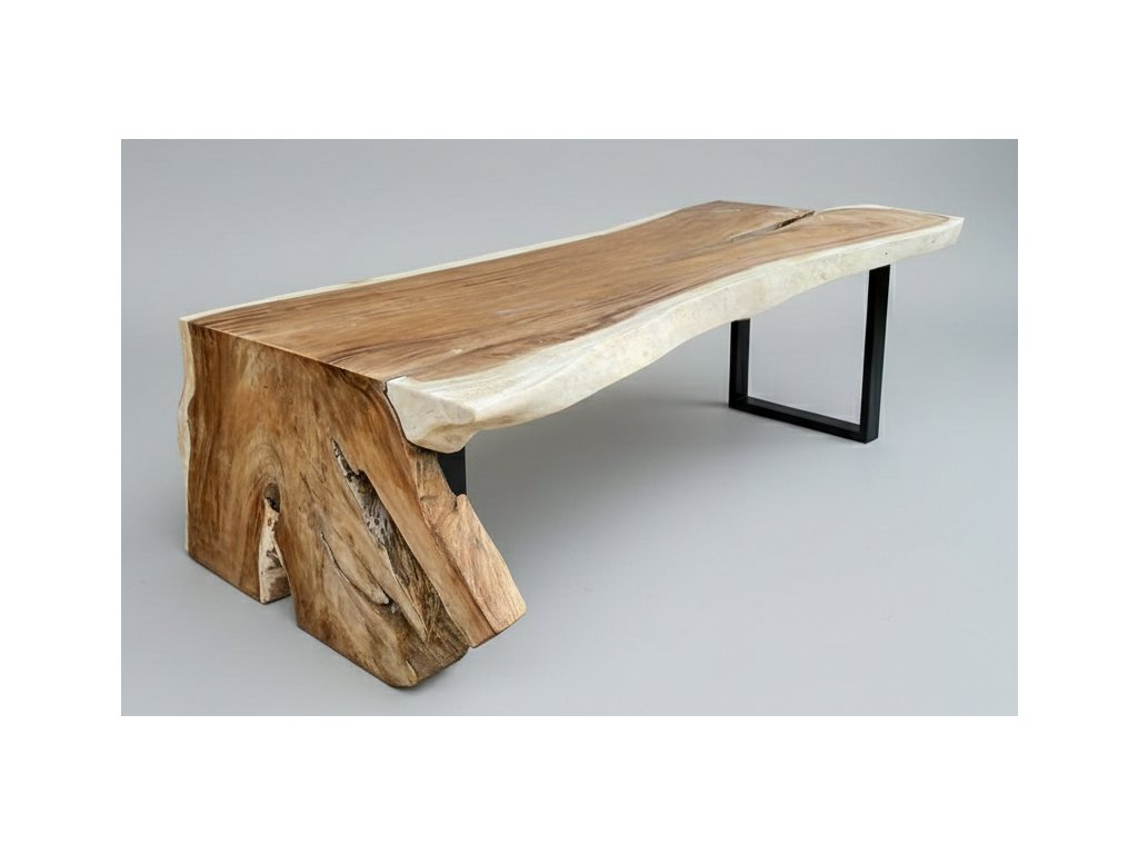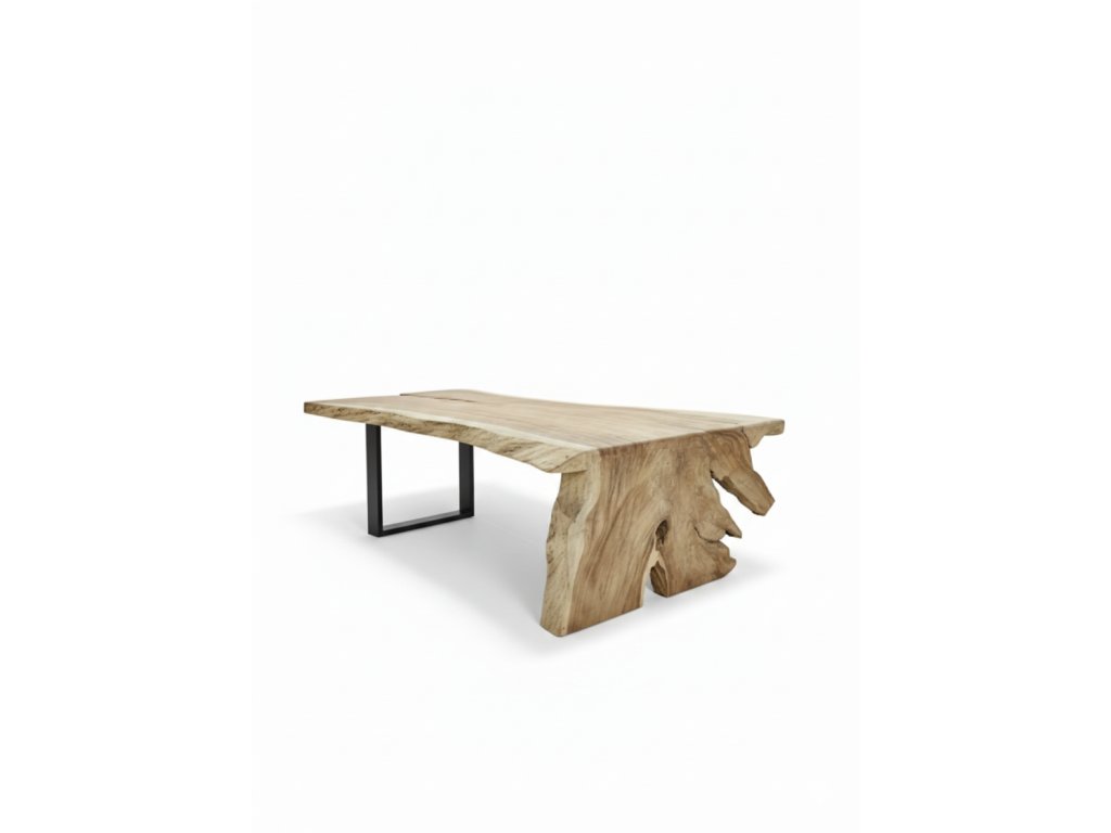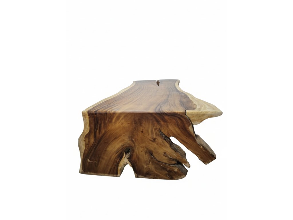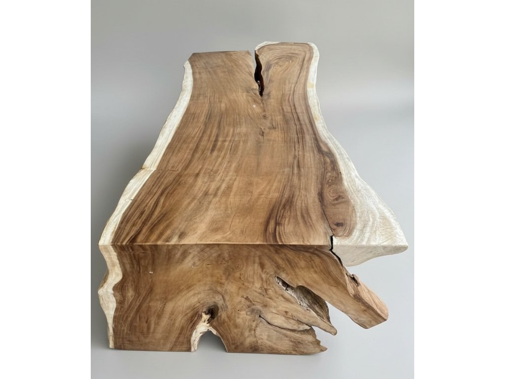 Tyto výjimečné stoly jsou vyrobeny z jednoho masivního kusu suarového dřeva, bez lepení, napojování nebo skrytých spojů. Deska i noha tvoří jeden celek, který zachovává přirozený tvar kmene, jeho kresbu, suky i organické linie. Každý stůl je ručně opracovaný originál, který nelze zopakovat.