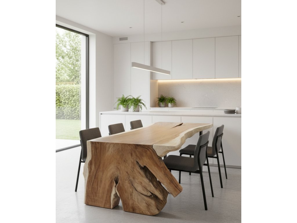 Tyto stoly nejsou jen funkčním nábytkem, ale výrazným designovým prvkem. Stanou se dominantou prostoru a místem, kde se potkává příroda, poctivé řemeslo a jedinečný charakter každého kusu.